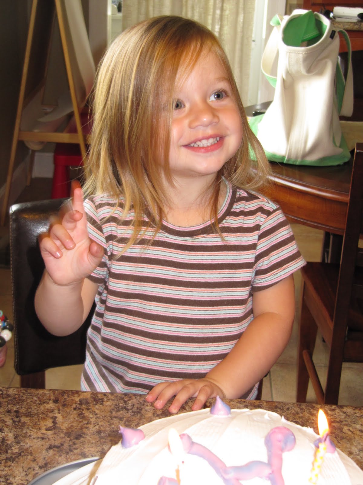 Anyway, even though the trucks were running, hauling grain to the river, the mulch was being delivered and dumped on my driveway, the internet man was on the roof fixing our connection, and the girls played in the mud multiple times this morning, we were able to stop whatever we were doing this afternoon, after naps, and enjoy our big girl’s cake altogether. That’s the joy of having a dad who’s just a few steps away, filling up his semi from the “big bin.” He can stop in and sing happy birthday to his baby girl. That’s joy.