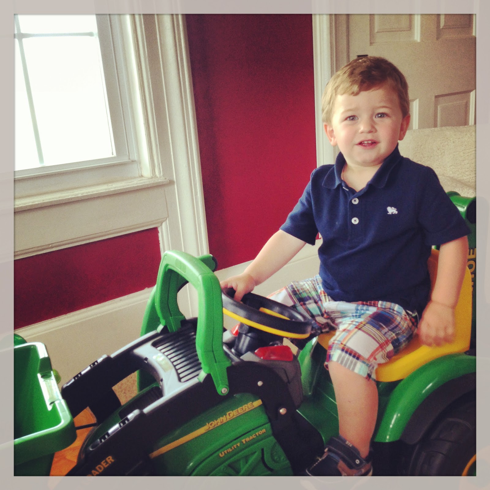 So why wouldn’t we purchase him an enormous battery powered John Deere tractor with a loader and a backhoe? Why wouldn’t I want to give my already quite speedy toddler wheels to ride and most likely steer poorly?