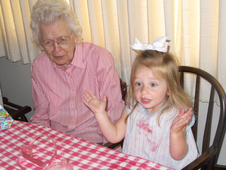| Grandma and Amelia at the first of their many shared birthday parties. |